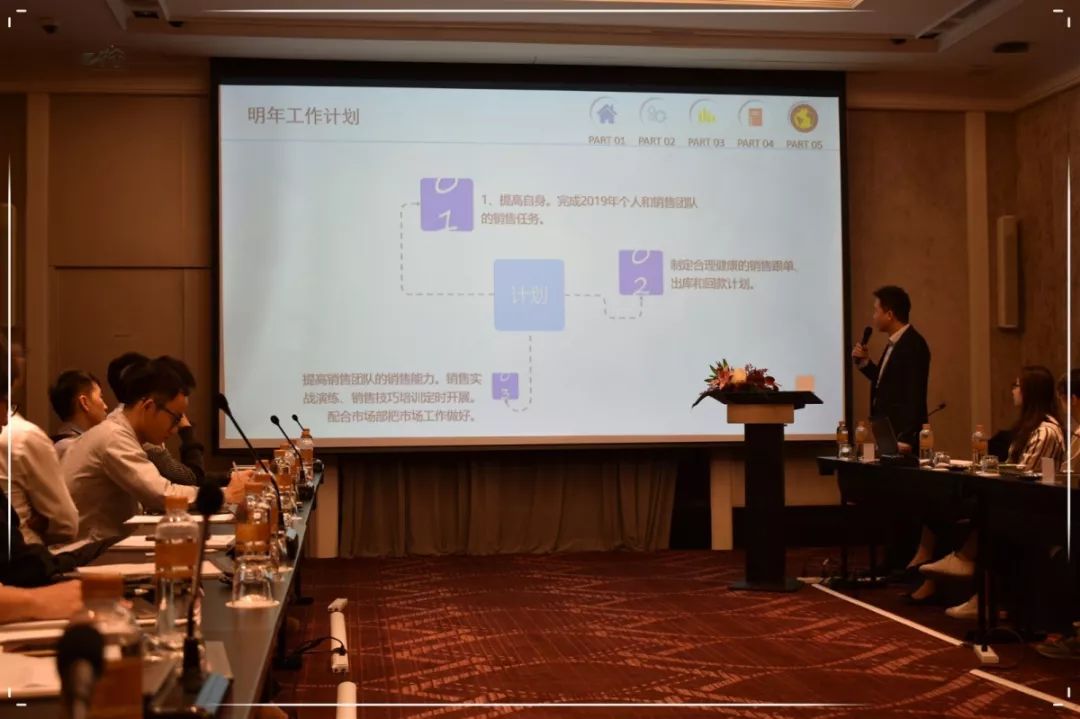 紧接着,职能部门商务部、财务部、人事部、采购部对公司职能工作进行了总结与汇报。商务部讲解了关税相关政策以及应对方案,并强调了公司产品报备与合同填写的规范性。财务部总结了2018年遇上的各种发票问题与报账问题等,优化了公司财务制度,更好的方便各部门的工作。人事部对公司新增的福利待遇等进行总结,并对2019年公司薪资调整等情况进行了合理的规划,以及2019年公司人员招聘的工作安排。采购部针对2018年采购上所遇到的问题进行了总结并分析了采购数据,细化与优化了采购流程,助力销售部团队。公司健康平稳的发展离不开职能部门的兢兢业业,感谢职能部门的同事们!